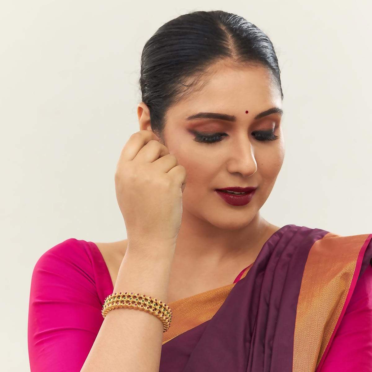 Gold-Plated Traditional Bangles with Synthetic Stone Embellishments