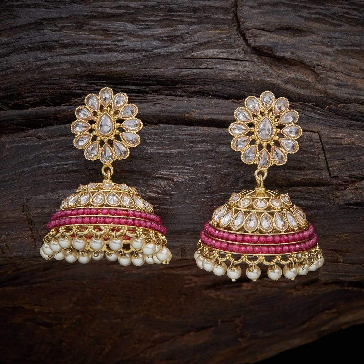 It is time you own this pair of jhumka crafted with copper alloy holds a gold shade. It is embellished with stones and the beads at the bottom add to the look.