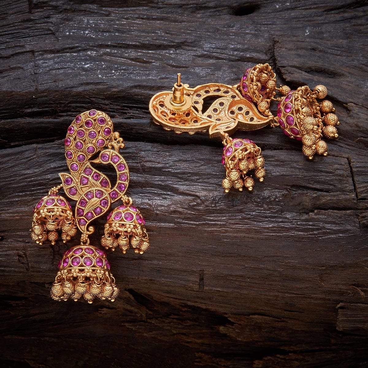 These Antique gold earrings are going to be an all-rounder for all your ethnic outfits. Detailed with neatly studded stones, this pair of copper alloy earring will make you shine out.