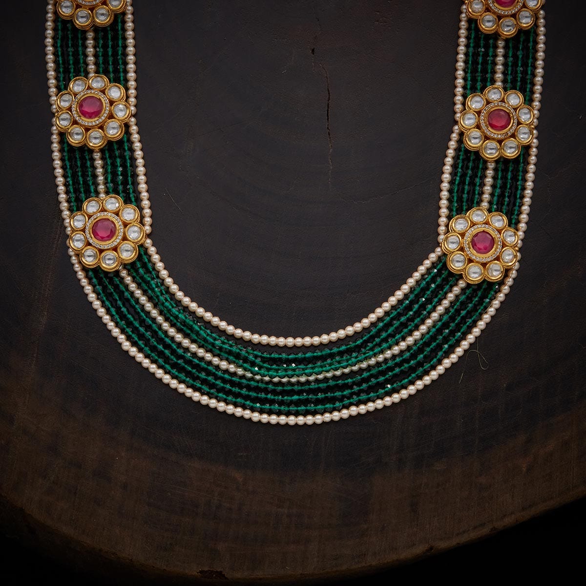 Make a stunning appearance with this layered necklace. This piece embellished with beads and stones defines modern stylish fashion. This gorgeous kundan necklace can be paired with both ethnic and modern clothes.